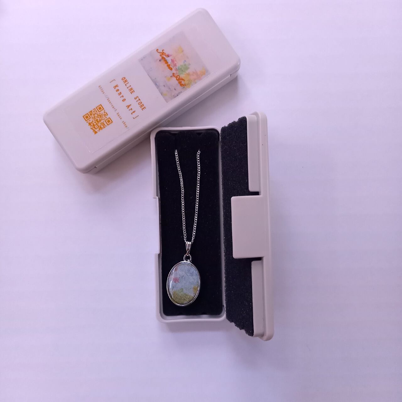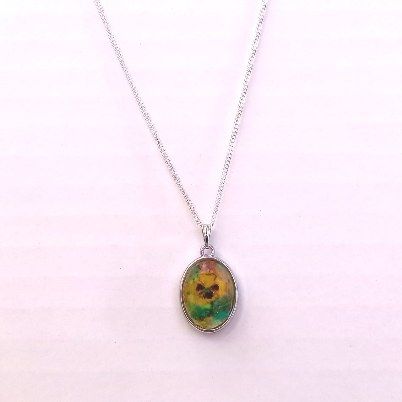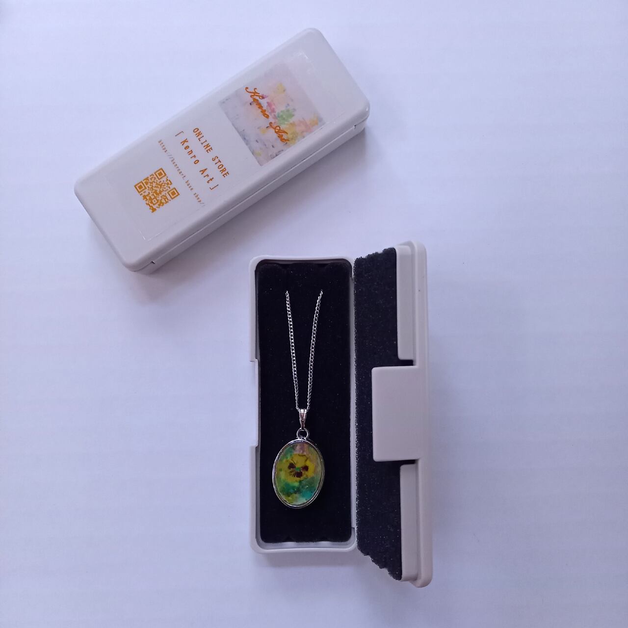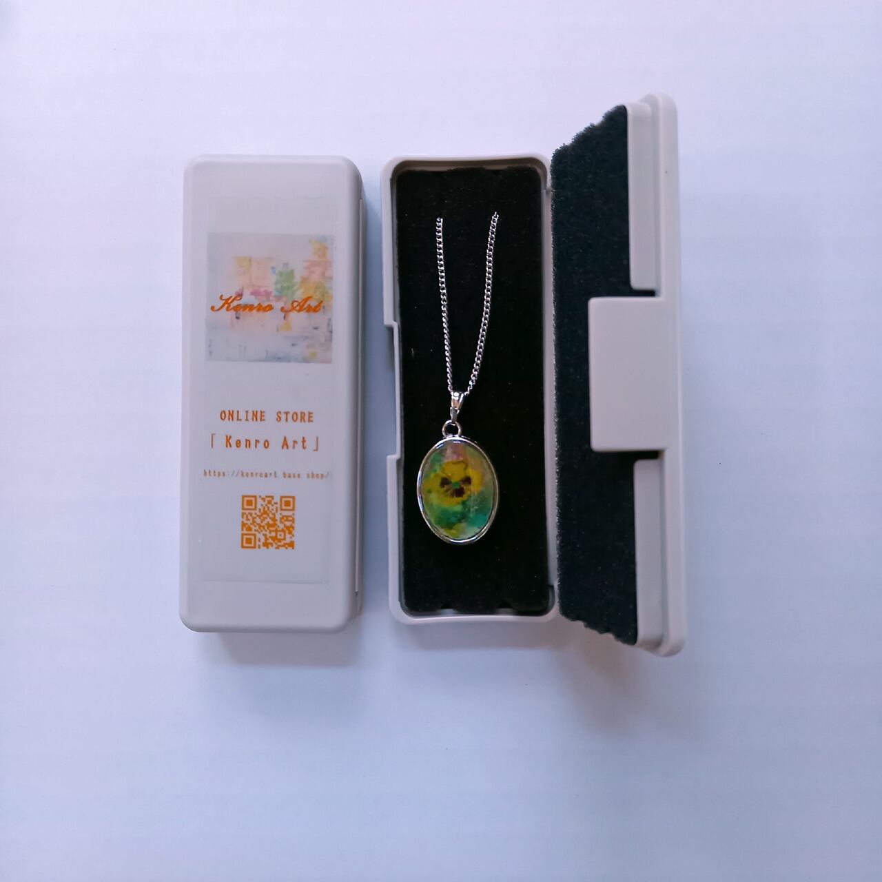 ネックレス「パンジー」 岩絵具 レジン リバーシブル